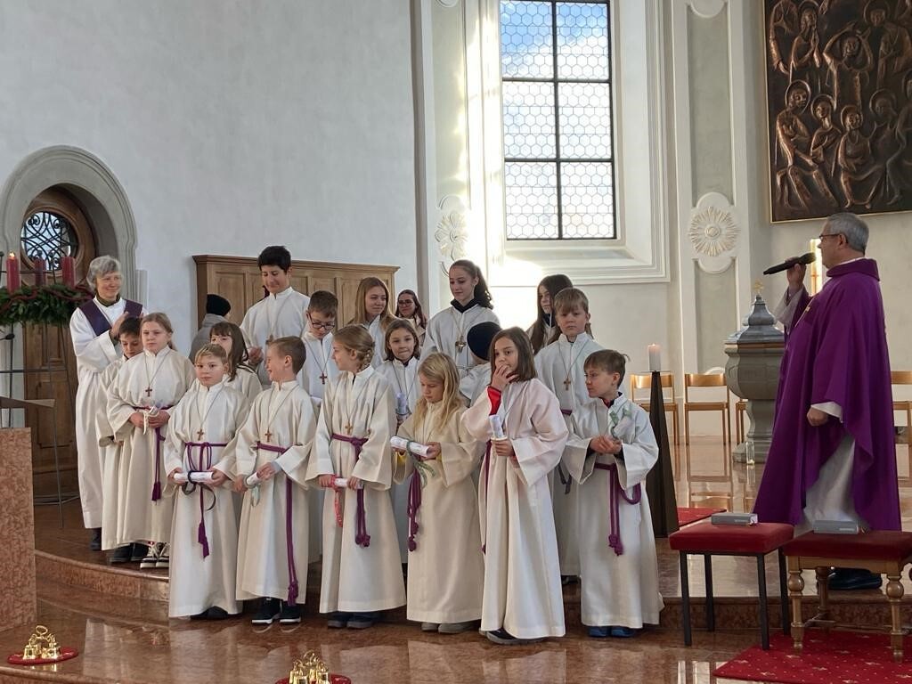 Zwei Monate lang lernten die 13 Kinder alles über den Dienst am Altar: Torzen, Gabenbereitung, Kollekte, Schellen, Gong und viele weitere Fremdwörter und den Ablauf einer Messfeier. Beim letzten Mini-Treff am 1. Dezember haben viele Minis Kekse gebacken, die an diesem Sonntag gegen eine Spende an die Mitfeiernden übergeben wurden.