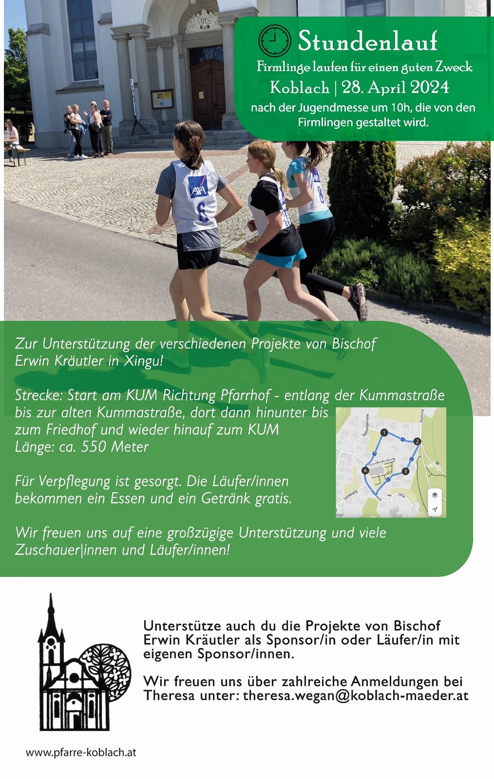 Stundenlauf der Firmlinge zugunsten der Projekte von Bischof em. Erwin Kräutler